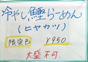■冷やしカツオらーめん(ヒヤカツ)、ライス